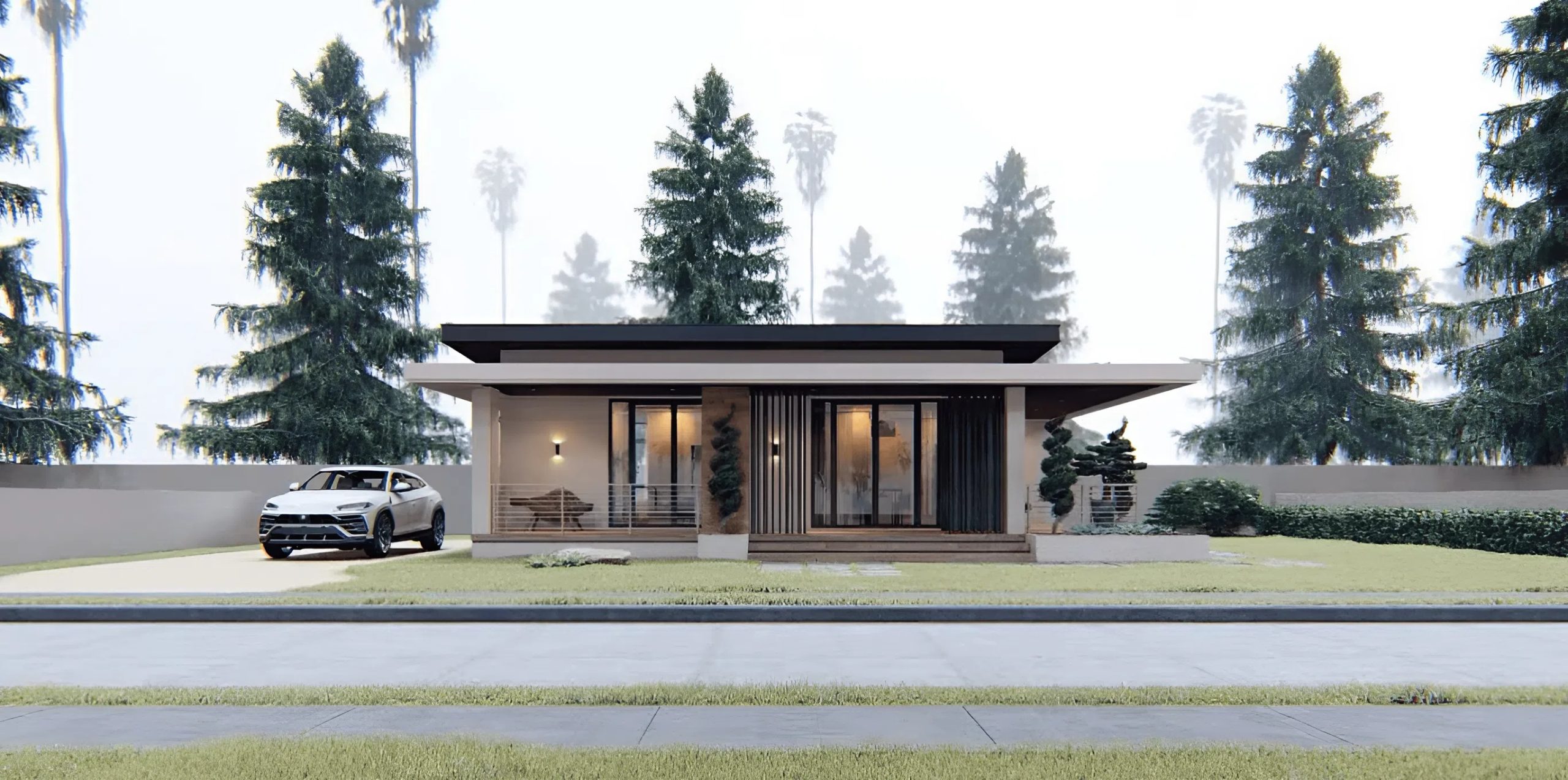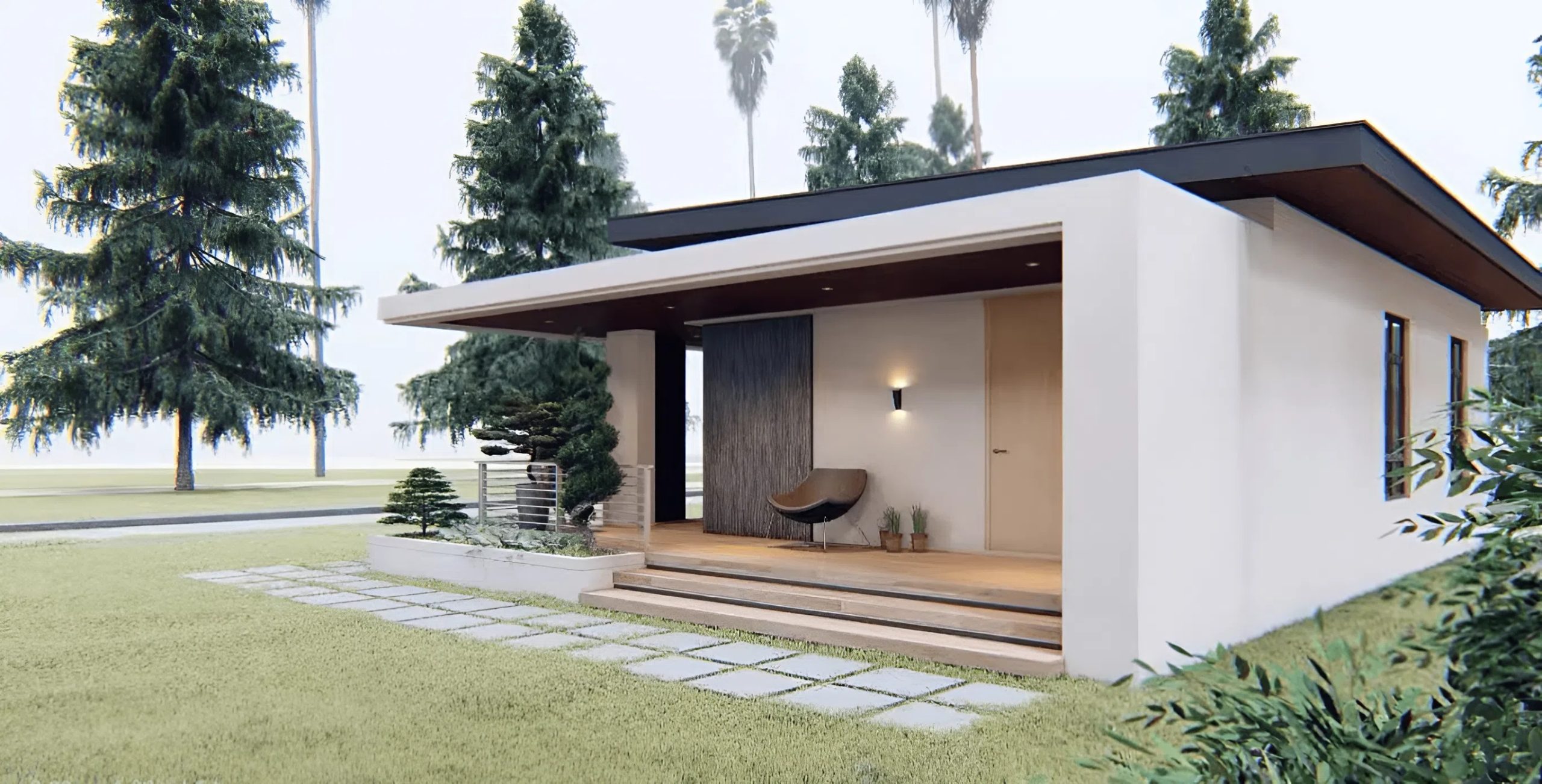 The spacious entrance veranda extends livable area past inside partitions, offering snug outside retreat areas. This lined porch serves a number of capabilities, from morning espresso spots to night leisure zones for studying or socializing. Massive floor-to-ceiling home windows dominate the entrance elevation, flooding inside areas with ample pure gentle whereas sustaining visible connections between indoor and outside areas.