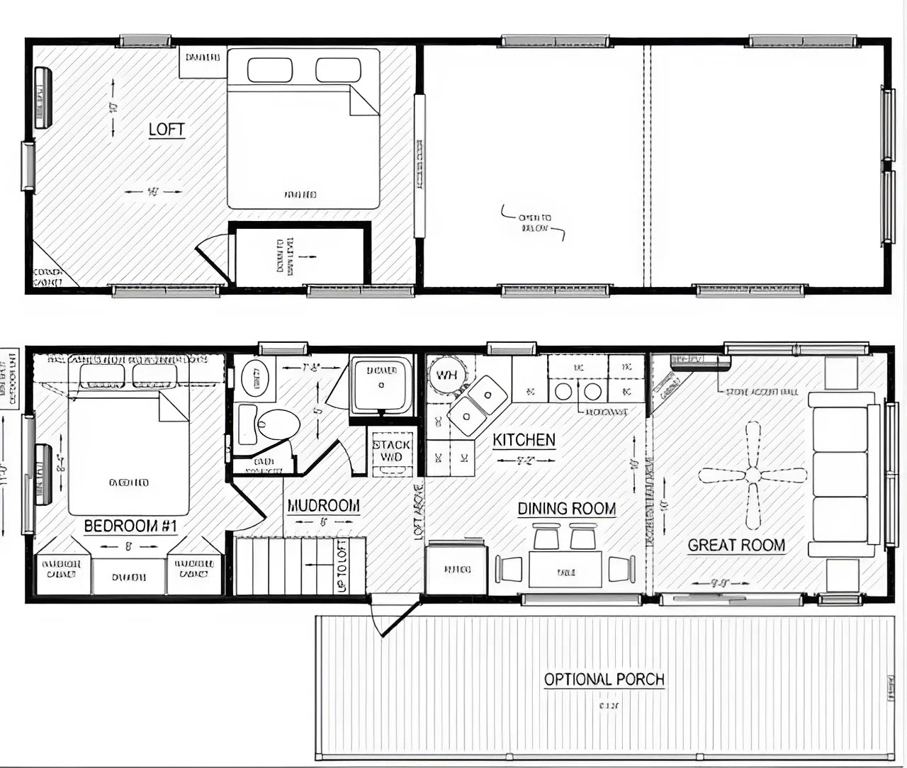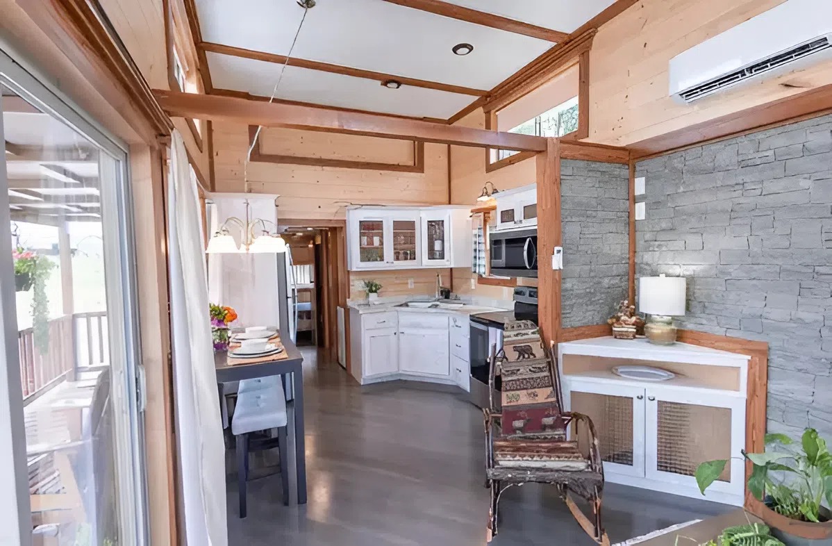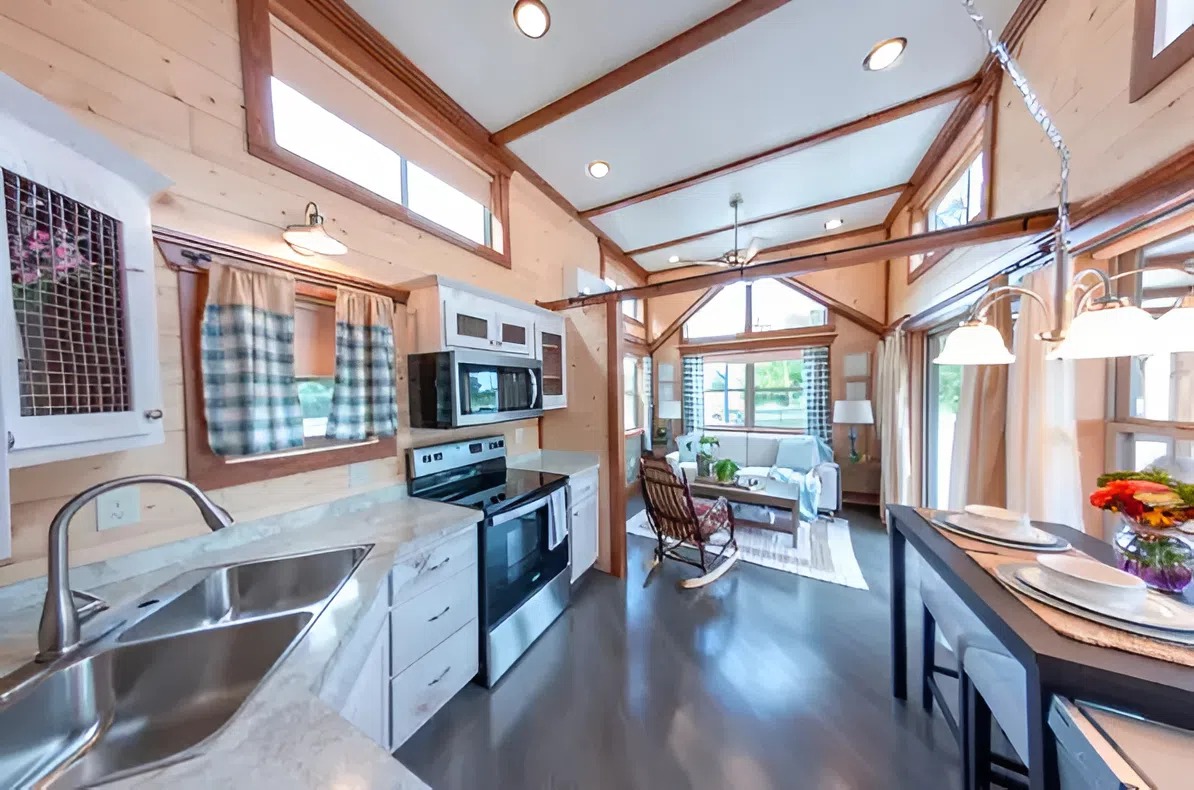 Inside, the open nice room serves as the guts of this dwelling, that includes a built-in leisure middle and strategically positioned transom home windows that improve the ethereal ambiance. The total-appliance kitchen suite ensures meal preparation stays handy, whereas the hand-crafted staircase—a trademark of Amish craftsmanship—results in the 5-foot-tall loft bed room. This elevated sleeping quarters comfortably accommodates a king-size mattress, built-in chest of drawers, and leisure nook, proving that vertical house may be each practical and comfortable.