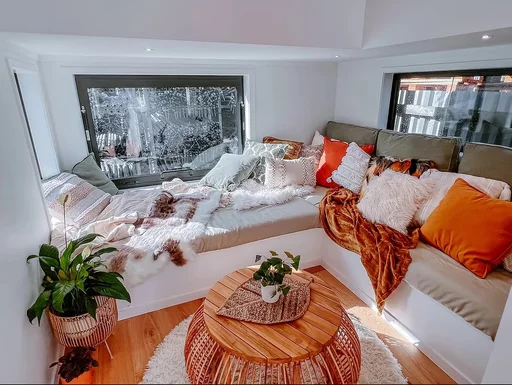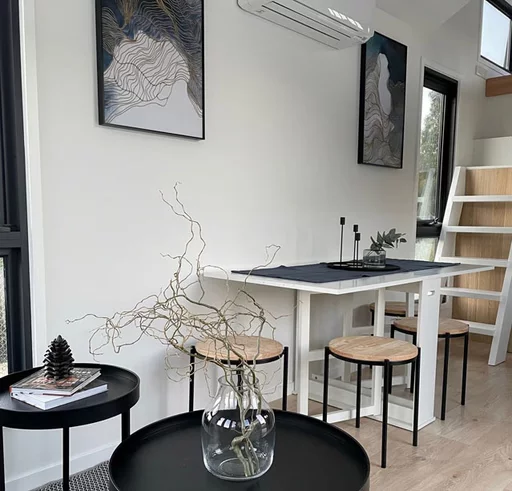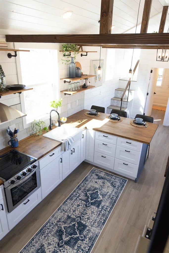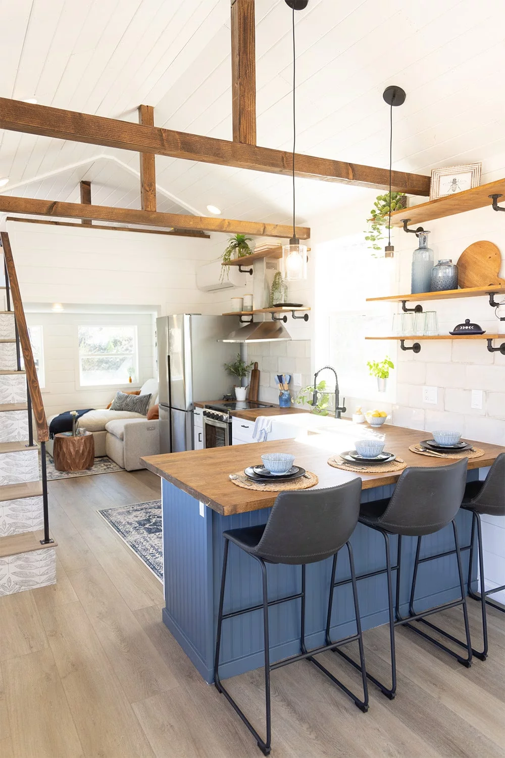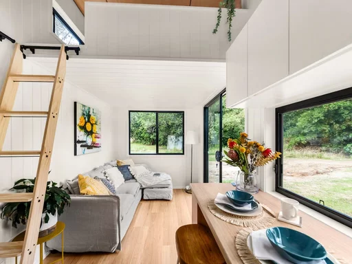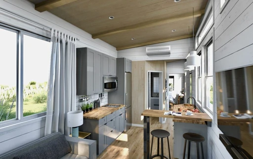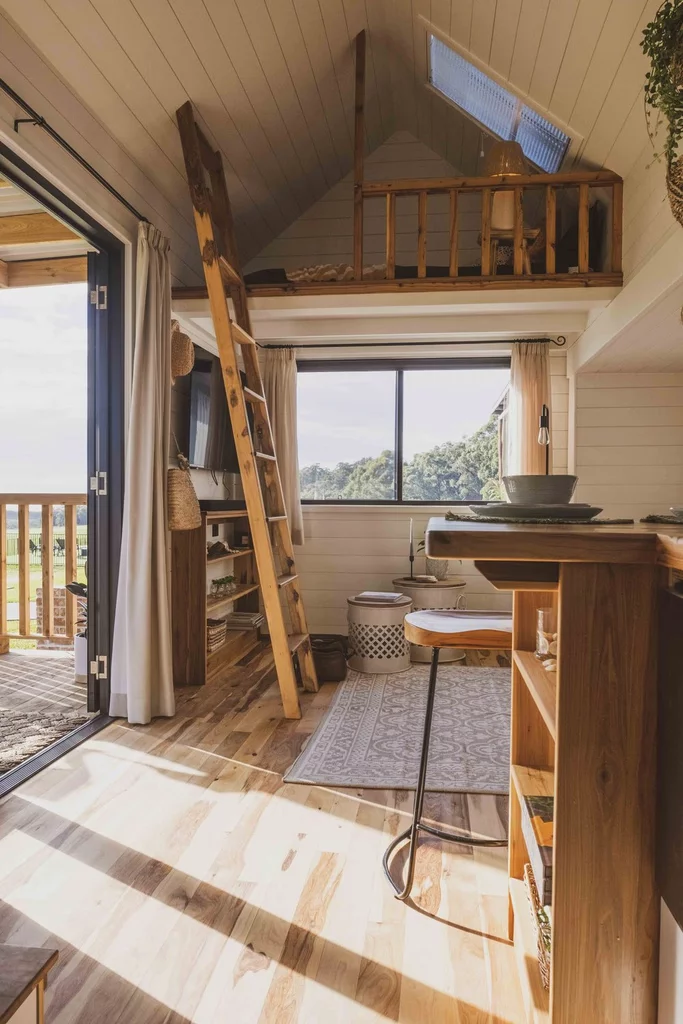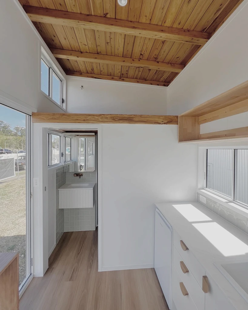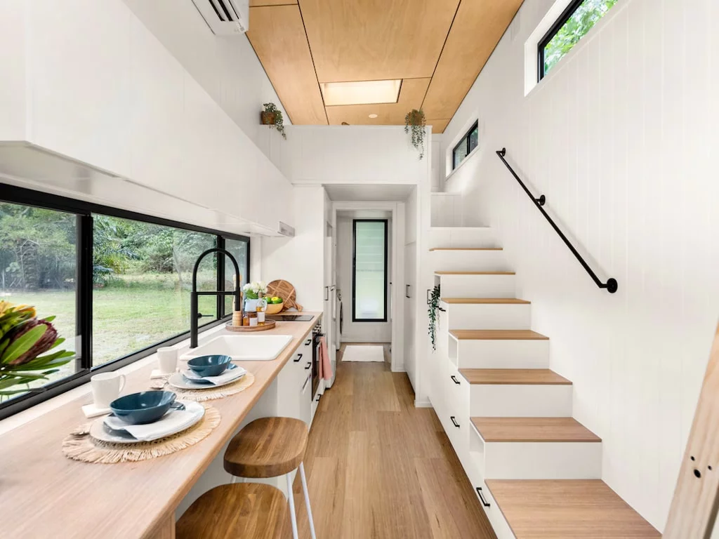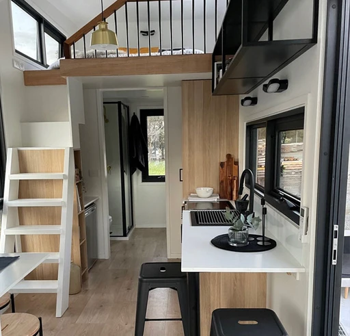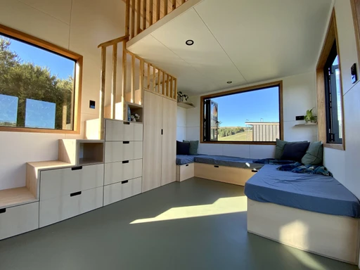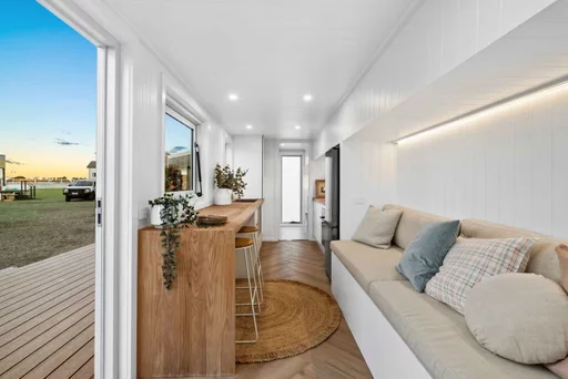 Coastal Cozy is a 6m design fitted to one or two residents. The neutral-toned inside incorporates timber accents, a compact kitchenette with bar eating, an environment friendly lavatory, and a cushty ground-floor queen mattress.