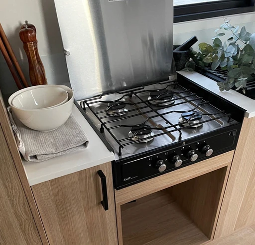 Teewah 8.4 consists of two full-size loft bedrooms, a rest room with laundry area, and a well-equipped kitchen — all inside 8.4 meters of cleverly utilized design.