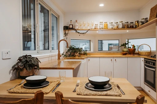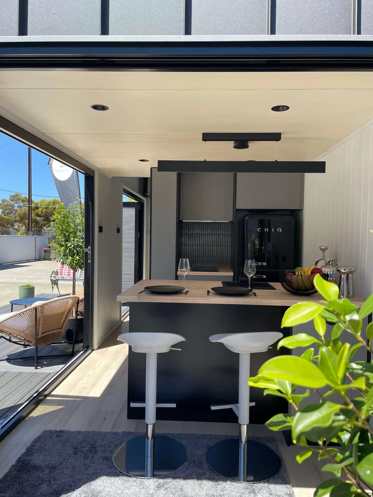 INDI’S blends indoor and outside dwelling with bi-fold doorways, spacious loft bedrooms, and a kitchen that includes a wood benchtop and breakfast bar — excellent for social or household dwelling.