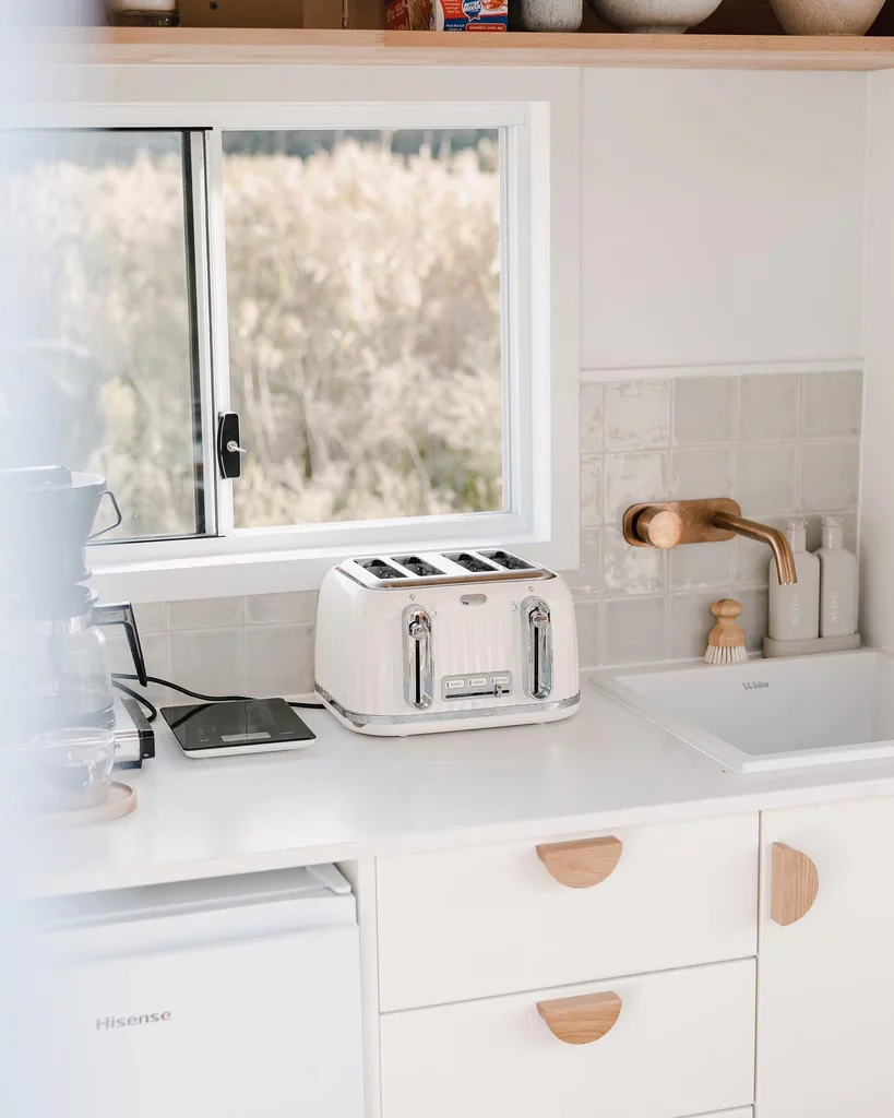 The Shaka Shack affords a comfortable 6m format with a compact kitchenette, bar-style eating, and a scenic window perfect for rest and scenic retreats.