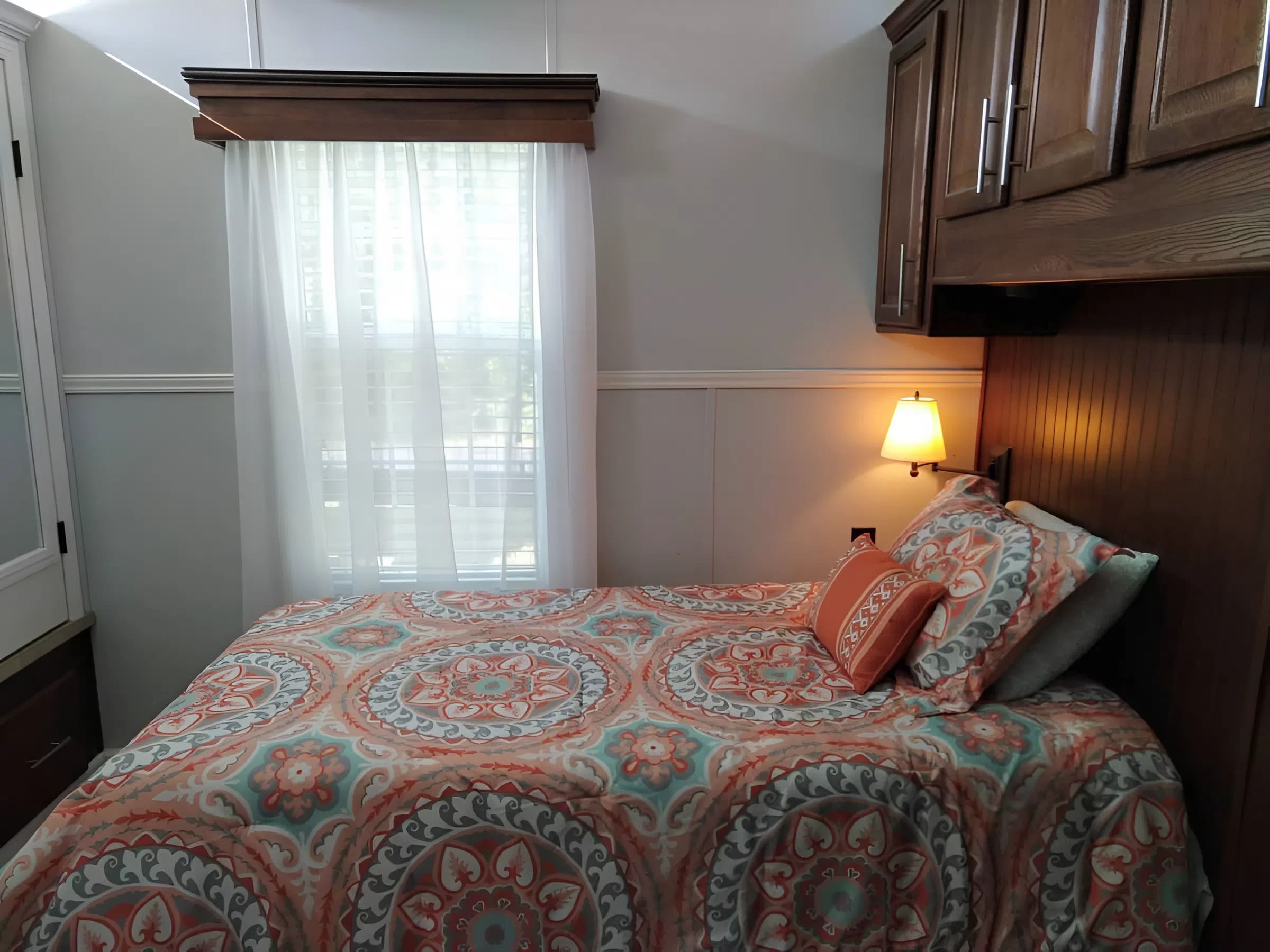Measuring just below 600 sq. ft., the Crimson Poppy features a separate shed for handy storage. Each double-door porches — one open and one screened — overlook a serene lake with a mild fountain, creating a relaxed and peaceable surroundings ultimate for leisure.