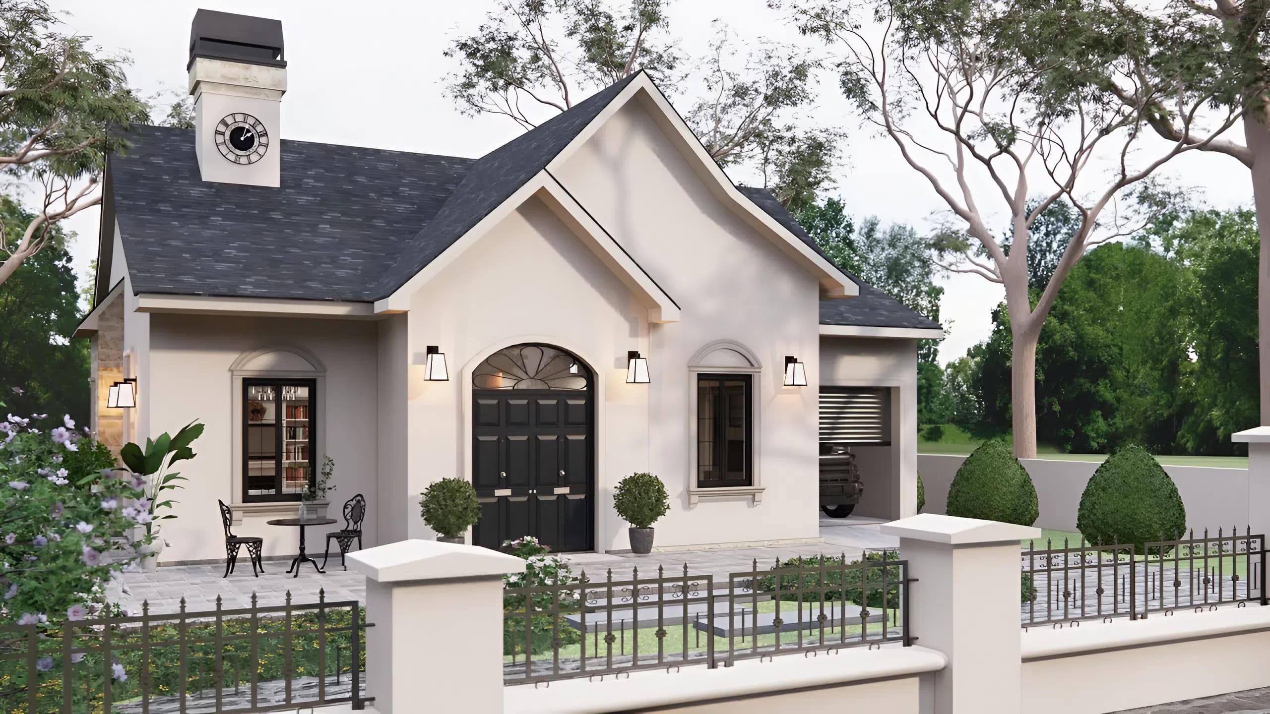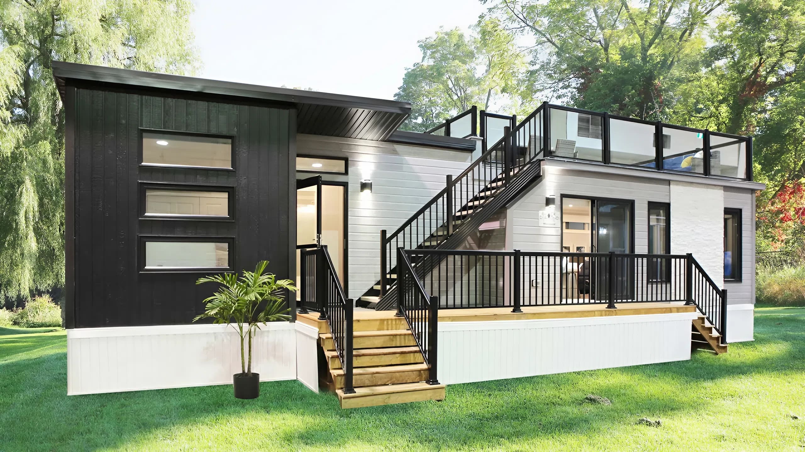 The facade is completed with high-quality pure wooden siding and a extremely sturdy, weather-resistant metallic roof. The outside coloration schematic depends on subtle impartial tones—crisp whites and deep grays—creating an air of timeless class.
