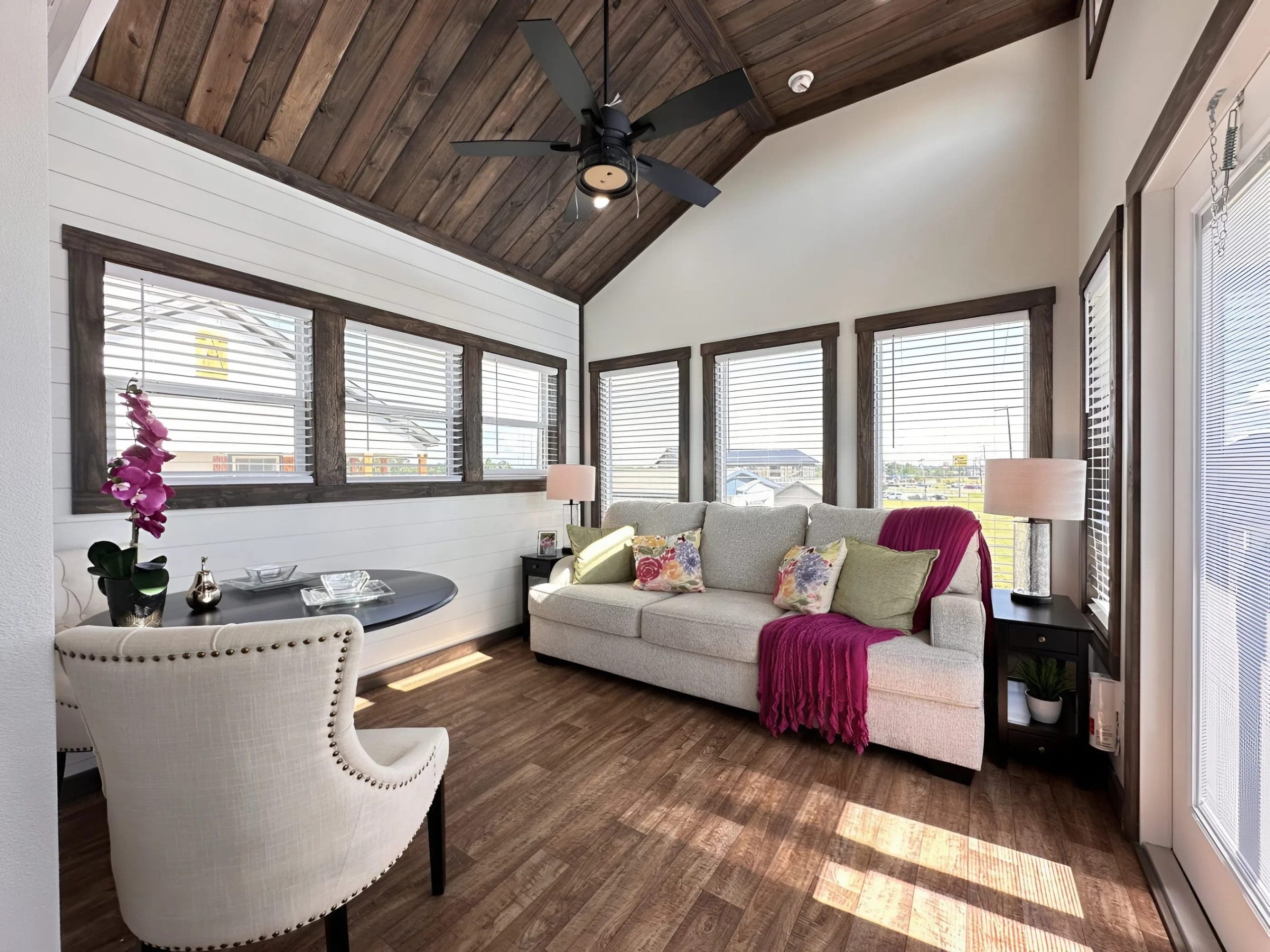 Vaulted ceiling design optimizes air circulation whereas massive home windows facilitate pure air flow throughout temperate months.