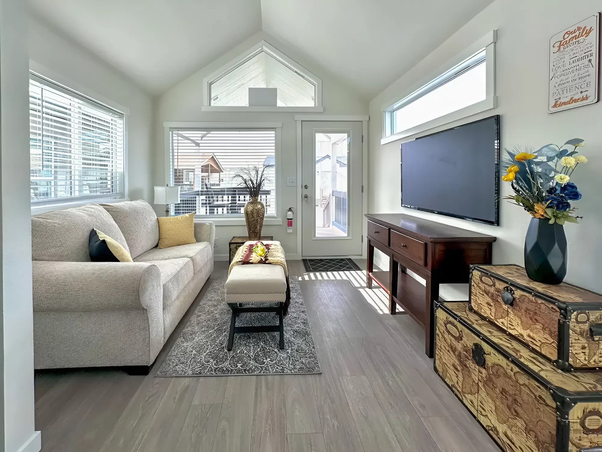 Manufacturing unit-delivered shell requires solely portray, furnishings ($300-500 eating/residing), and optionally available upgrades to create fully personalised residing atmosphere.